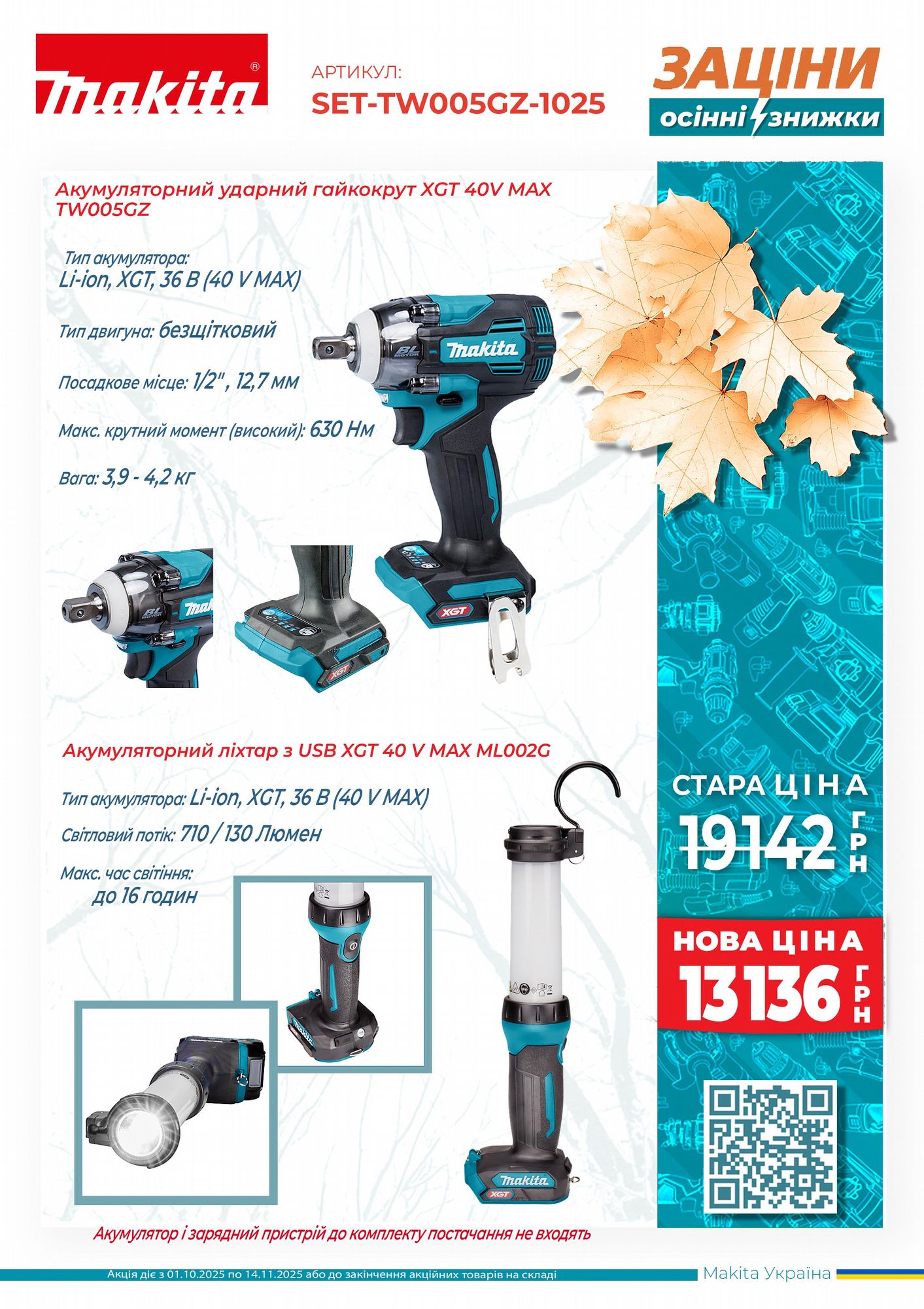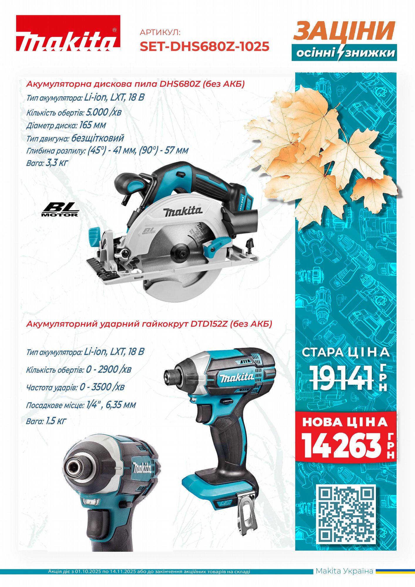 Перелік акційних пропозицій, що діють з 01 жовтня по 14 листопада 2025 року.